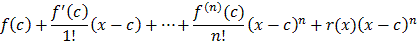 f(x) =where R(n+1)(x) =for some t between x and c. | |