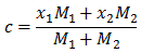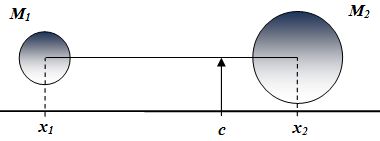 Now Jillian remembers her math background and attacks the problem analytically. Recall that the combined center of gravity c of two objects with (point) mass M1 and M2, located at x1 and x1, respectively, is: