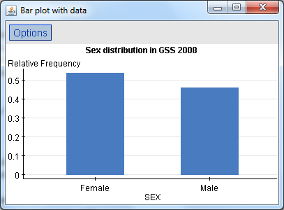 - Now you can label the x or y axis and provide a title to your plot. Enter “Sex distribution in GSS 2008” as title, then click “Compute”